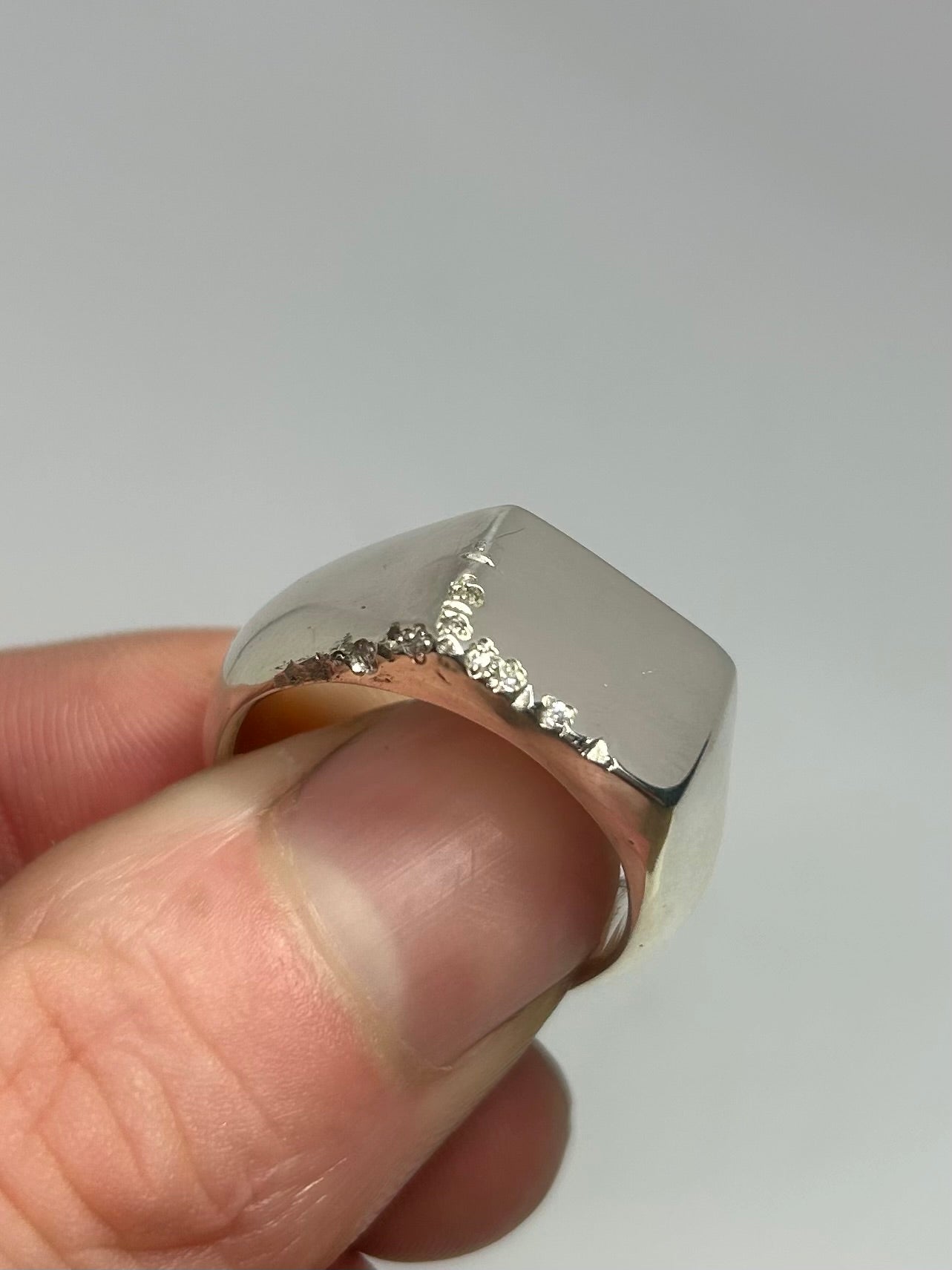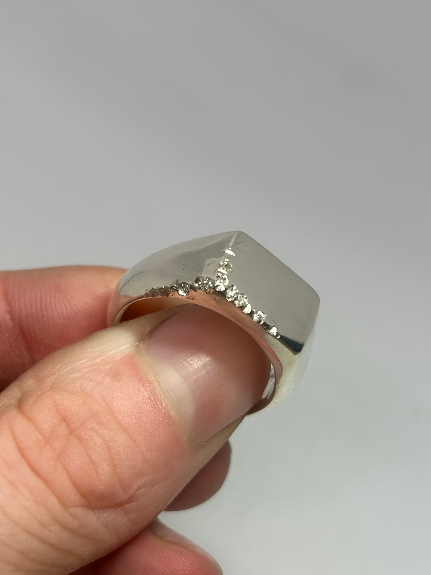 -Signet ring handmade with lab white diamonds and solid sterling silver.