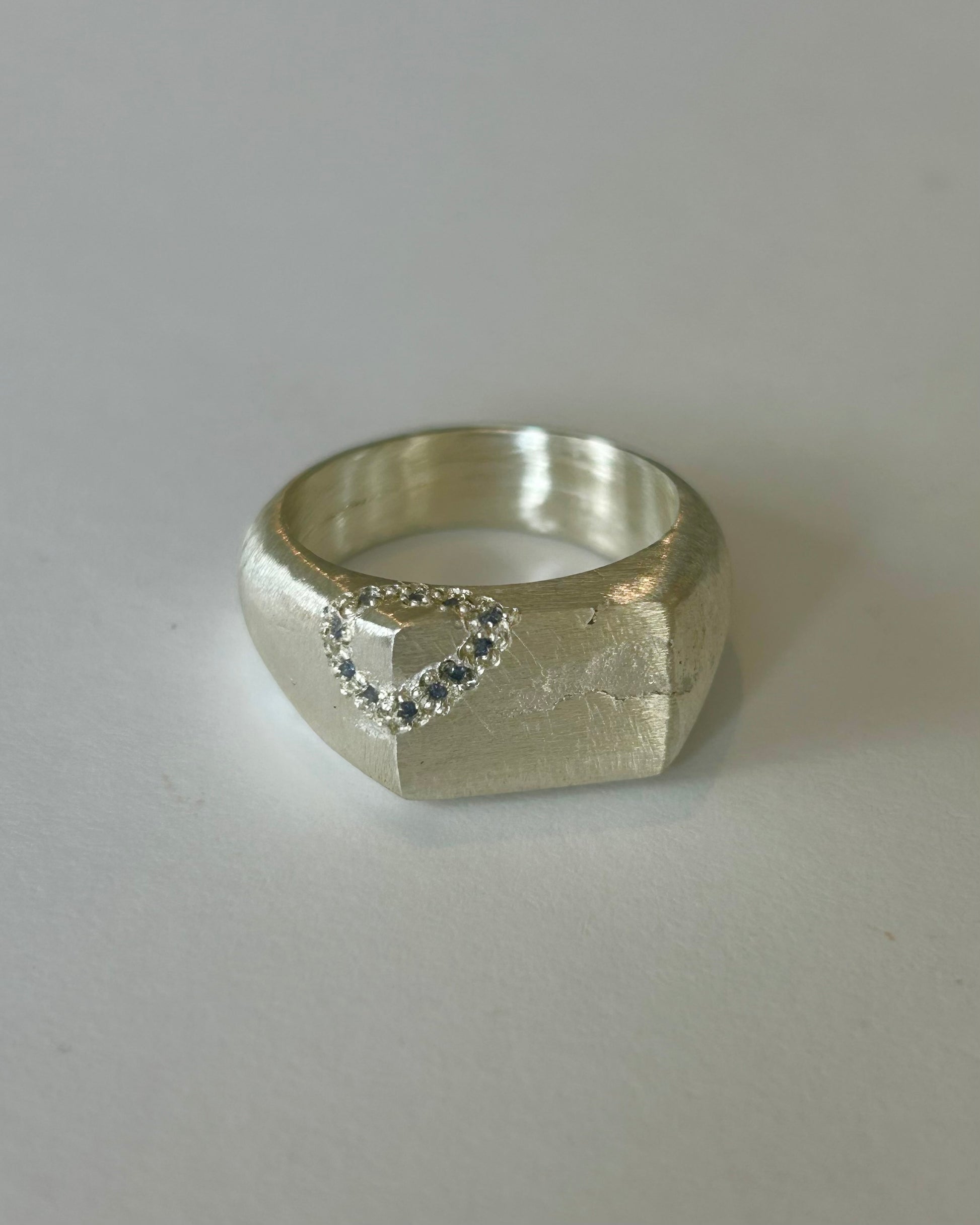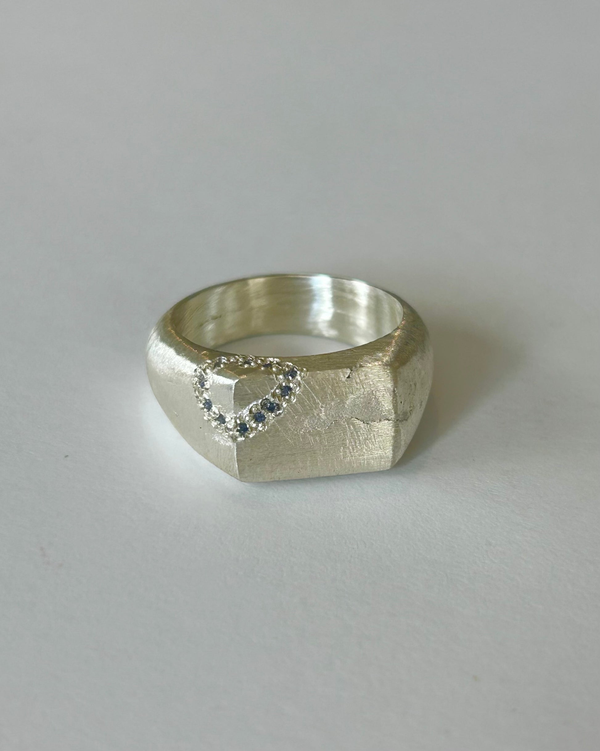 -Signet ring handmade with light blue tanzanites and solid sterling silver with a rough texture
