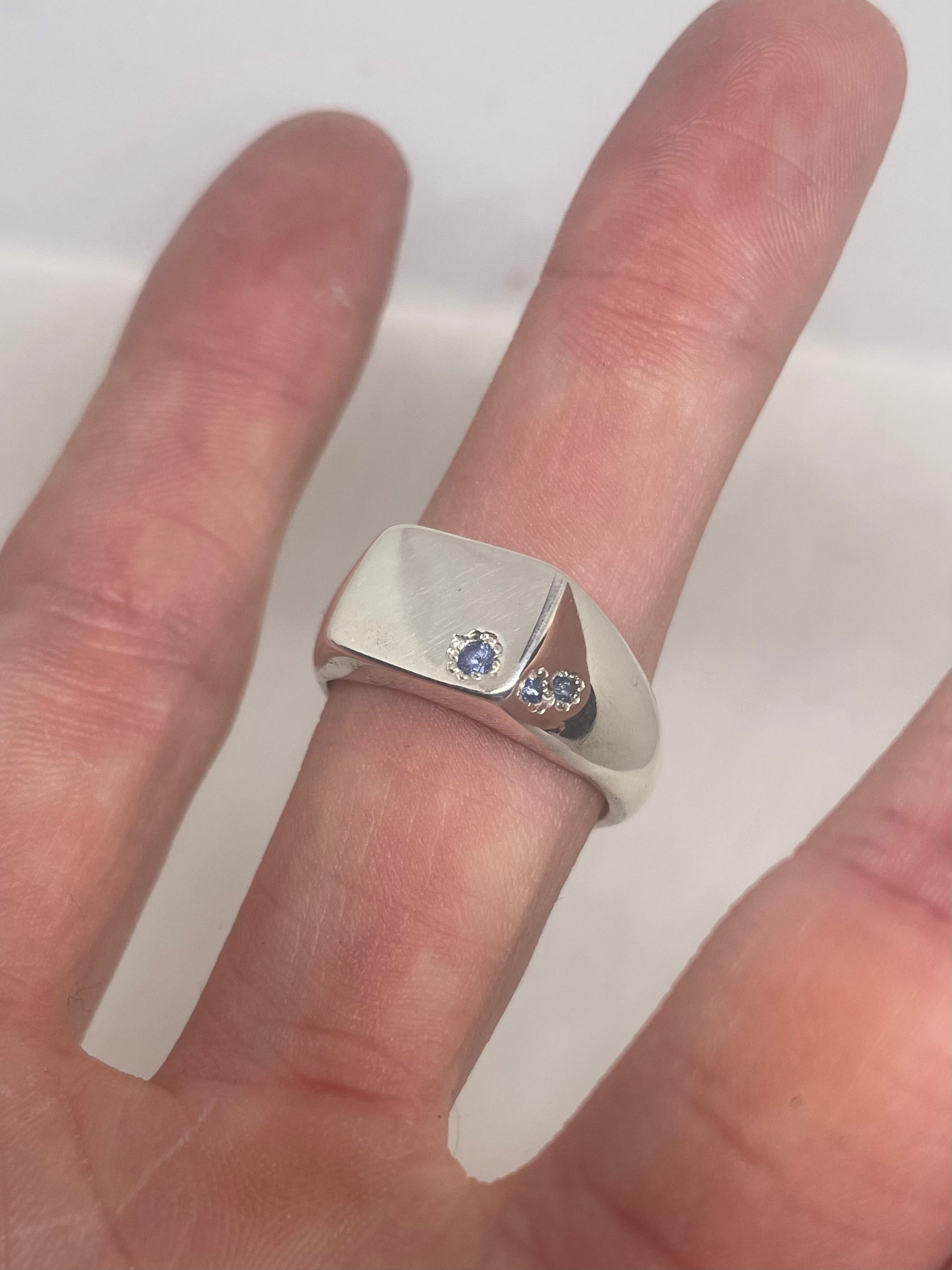 -Signet ring handmade with natural light blue sapphires and solid sterling silver.